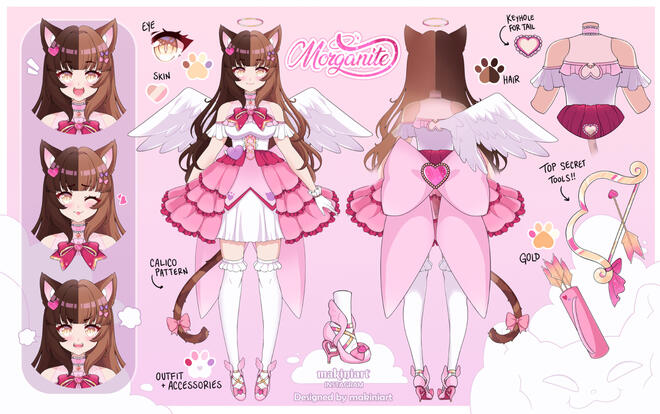 [ commission for morganiteXOXO @ twt ](In this example: cellshade coloring + back view + assets + expressions)Rig ready + Ref sheet: starts at $600 USD